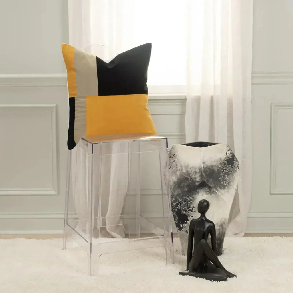 Woven Color Block Gold Throw Pillow Down Insert -