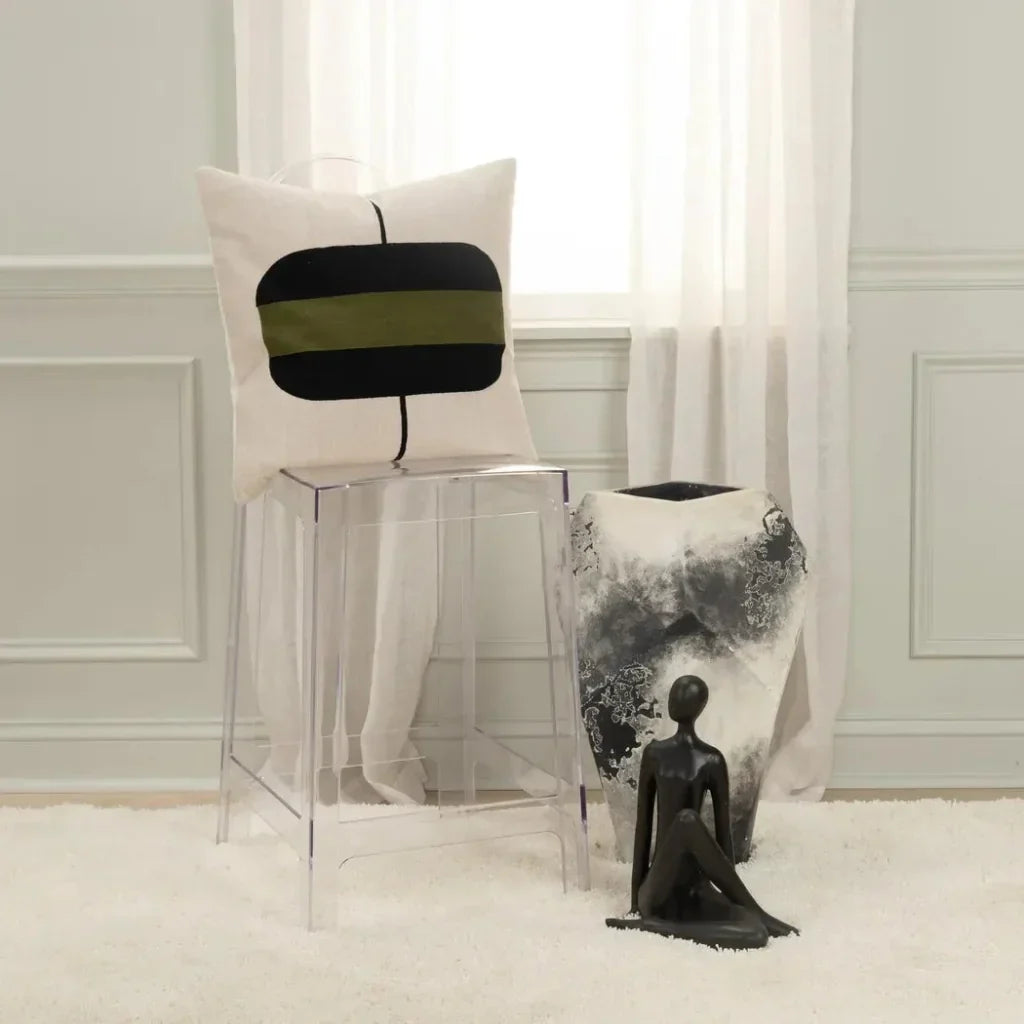 Woven Color Block Natural Throw Pillow Down Insert -