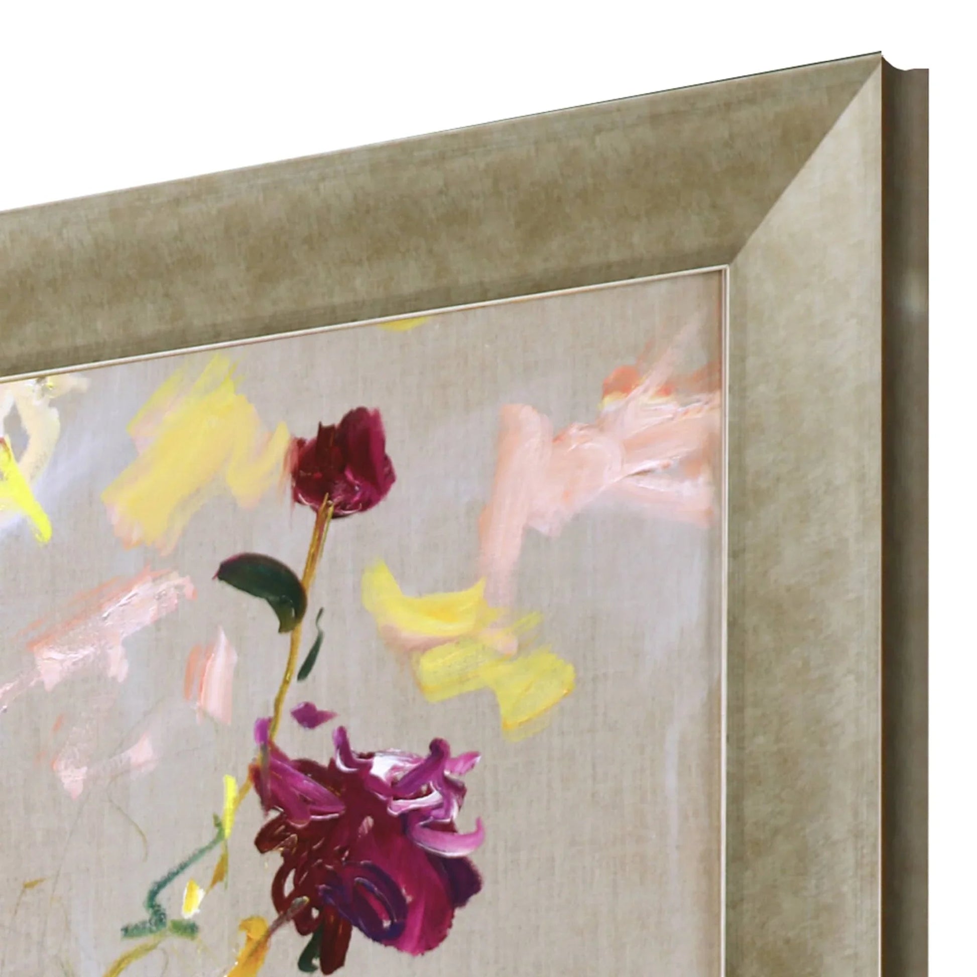 Crafted with attention to detail, the artwork is framed in a champagne gold finish moulding that complements the overall design beautifully. The frame adds elegance and ensures the art piece is ready to hang and admired. It is hand-assembled with care, highlighting the quality and craftsmanship involved in bringing this piece to life. The glass front not only protects the artwork but also enhances its visual appeal, providing a clear view of the intricate details and vibrant colors.