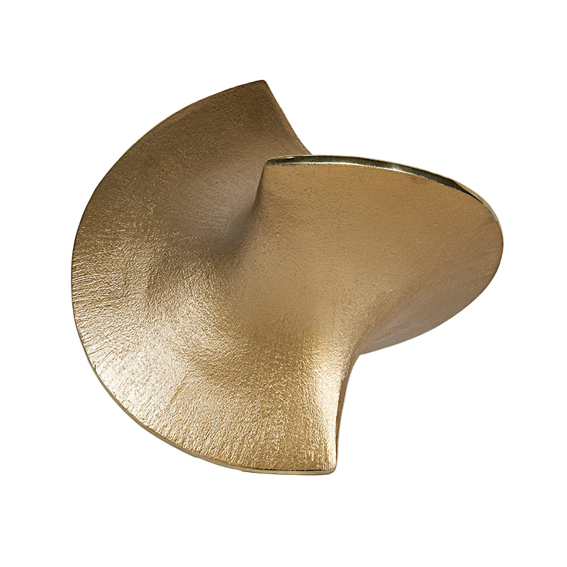 The Arlo Disc Sculpture is a striking art piece that blends simplicity with elegance. Crafted from sand-cast aluminum, its matte gold finish adds a touch of luxury to any space. Despite its compact size, this sculpture makes a bold statement, making it perfect for shelves or as a standalone decorative piece. The unique disc shape captures attention and adds a modern flair to your home or office. Its sturdy build ensures lasting durability, while its rich gold color enhances the aesthetic appeal. Ideal for art enthusiasts and those looking to elevate their decor with a sophisticated touch.