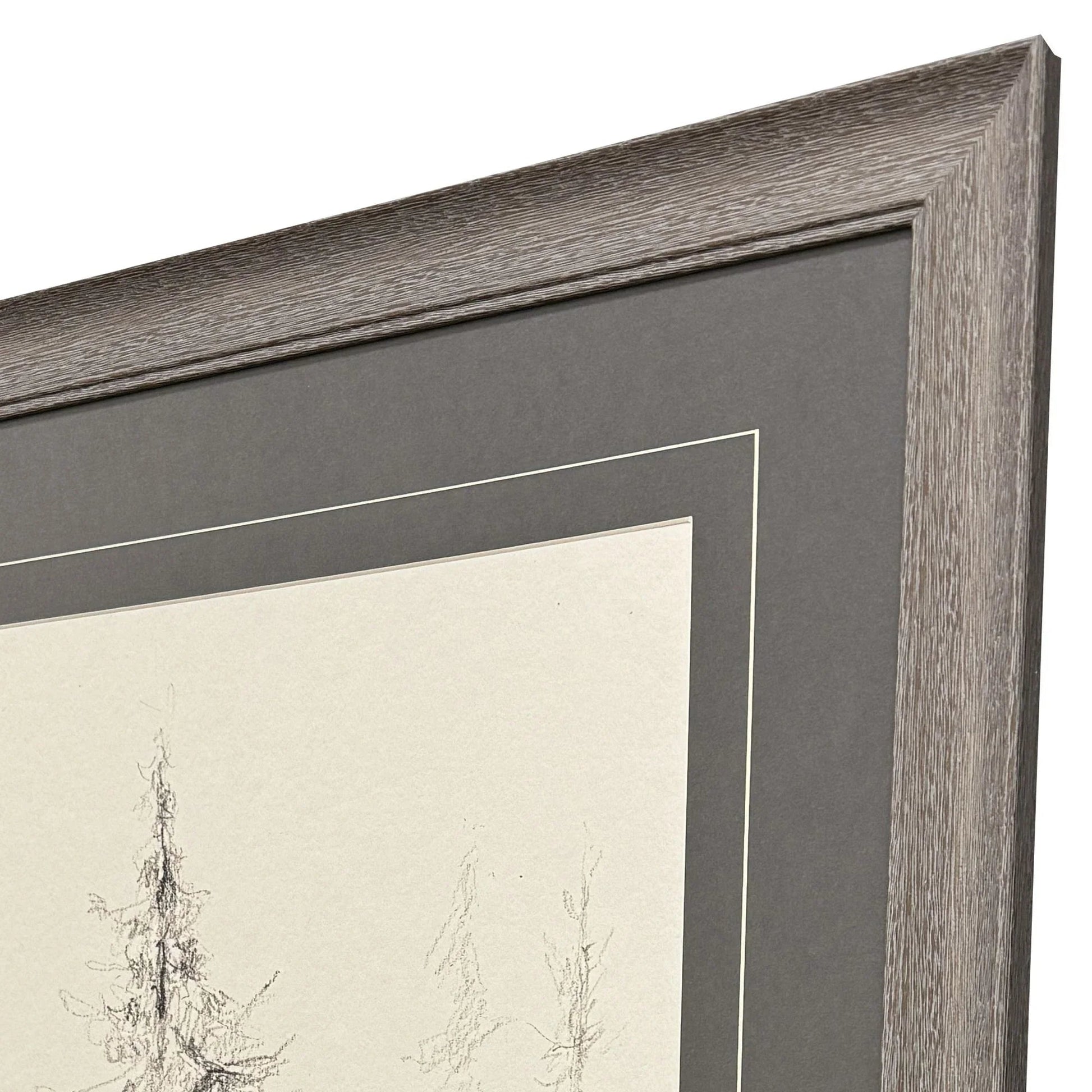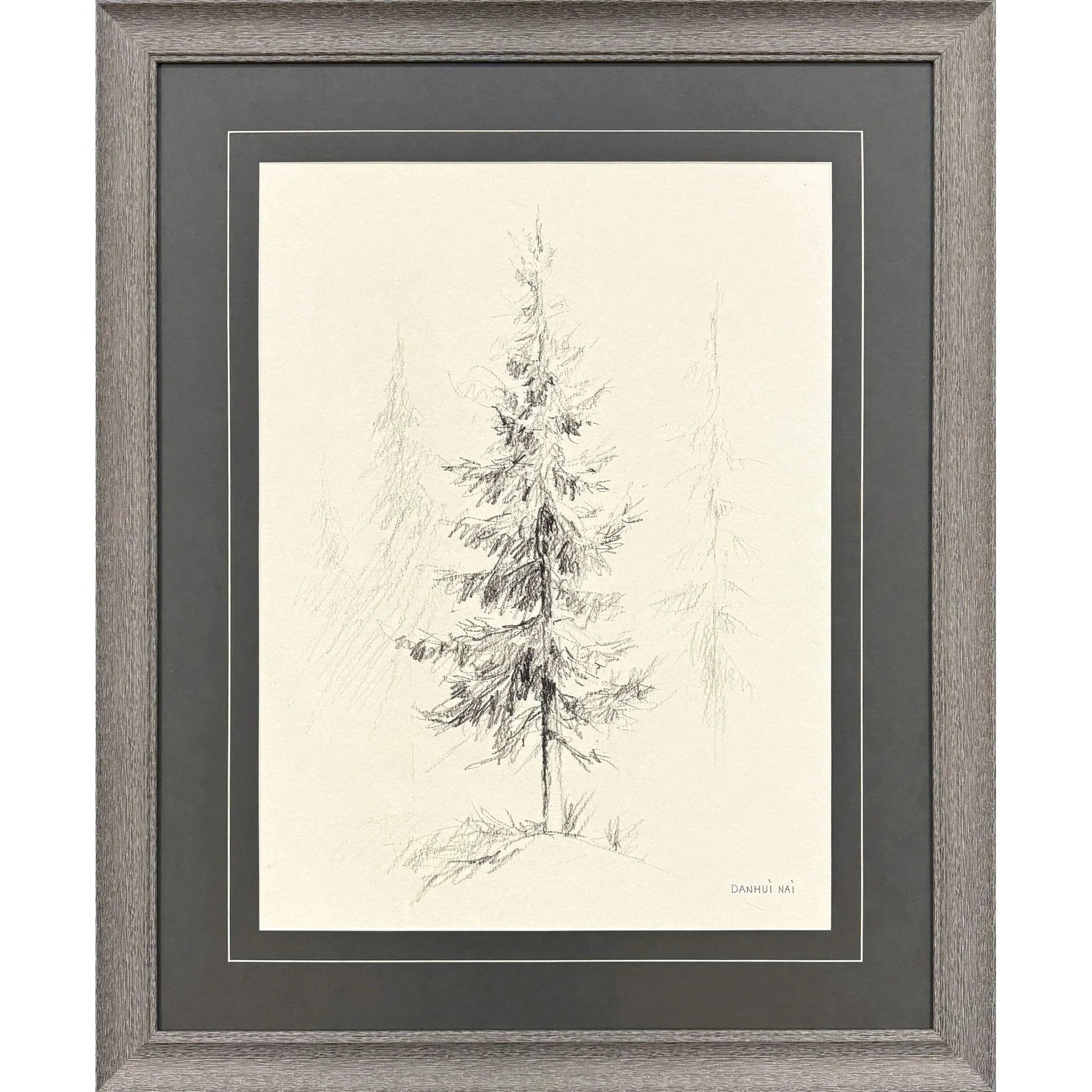 Bring the tranquility of nature into your home with this exquisite framed art piece. The Elegant Pine I and II captures the simplicity of a pine tree sketch, rendered in soft, muted tones. Its natural beauty is enhanced by a black mat that adds depth and contrast to the image. The rustic wood-grain finish of the frame echoes the organic theme, providing a classic touch that complements any casual decor style. Measuring with generous dimensions, this artwork is designed to be a stunning focal point in any room.