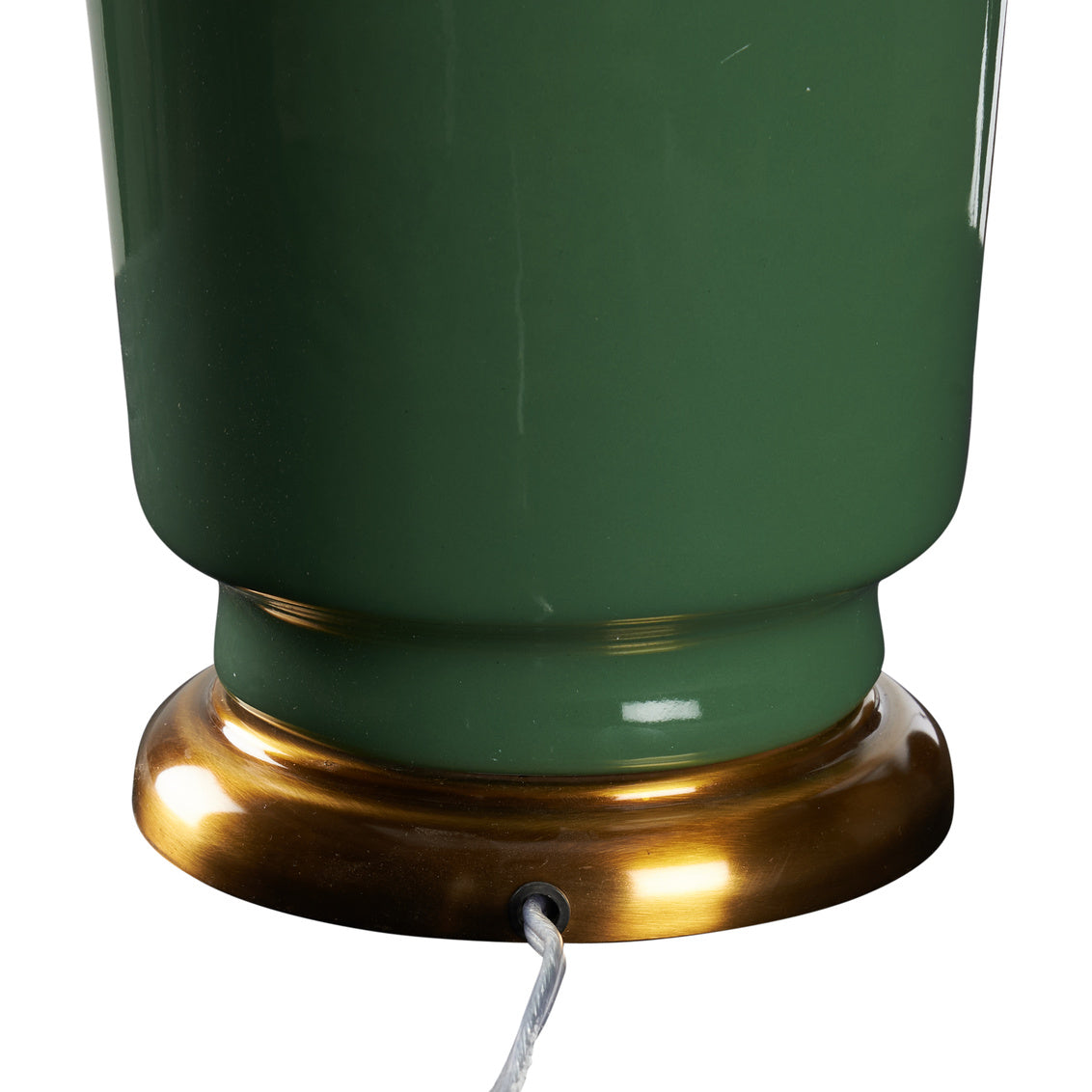 The Emma Lamp brings elegance and vintage charm to any room. Its red and green ceramic base has a warm antique brass finish, offering a classic look. The lamp features a white drum shade that softly diffuses light, creating a cozy atmosphere. A geometric gold finial tops the shade, adding a touch of sophistication. With its timeless design, this lamp is perfect for living rooms, bedrooms, or any space that needs a stylish touch. The lamp uses one bulb up to 100 watts, providing ample light for reading or relaxing. Enhance your home decor with the Emma Lamp's graceful style.
