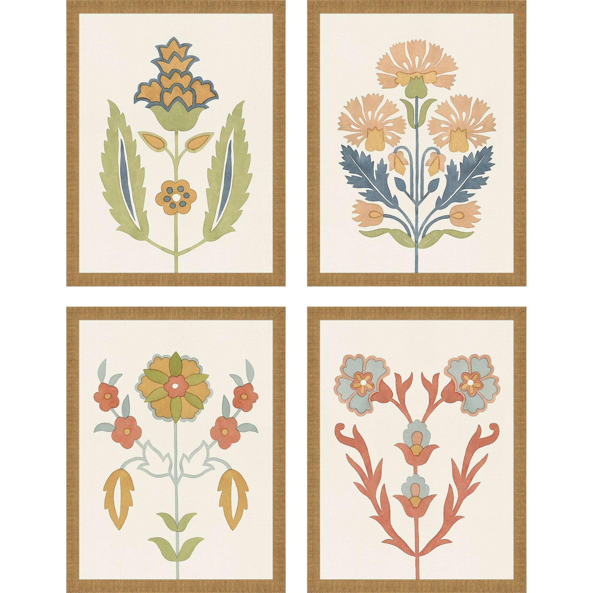 Folk Flourish S/4 Vintage Giclee Framed Art Set Features:
