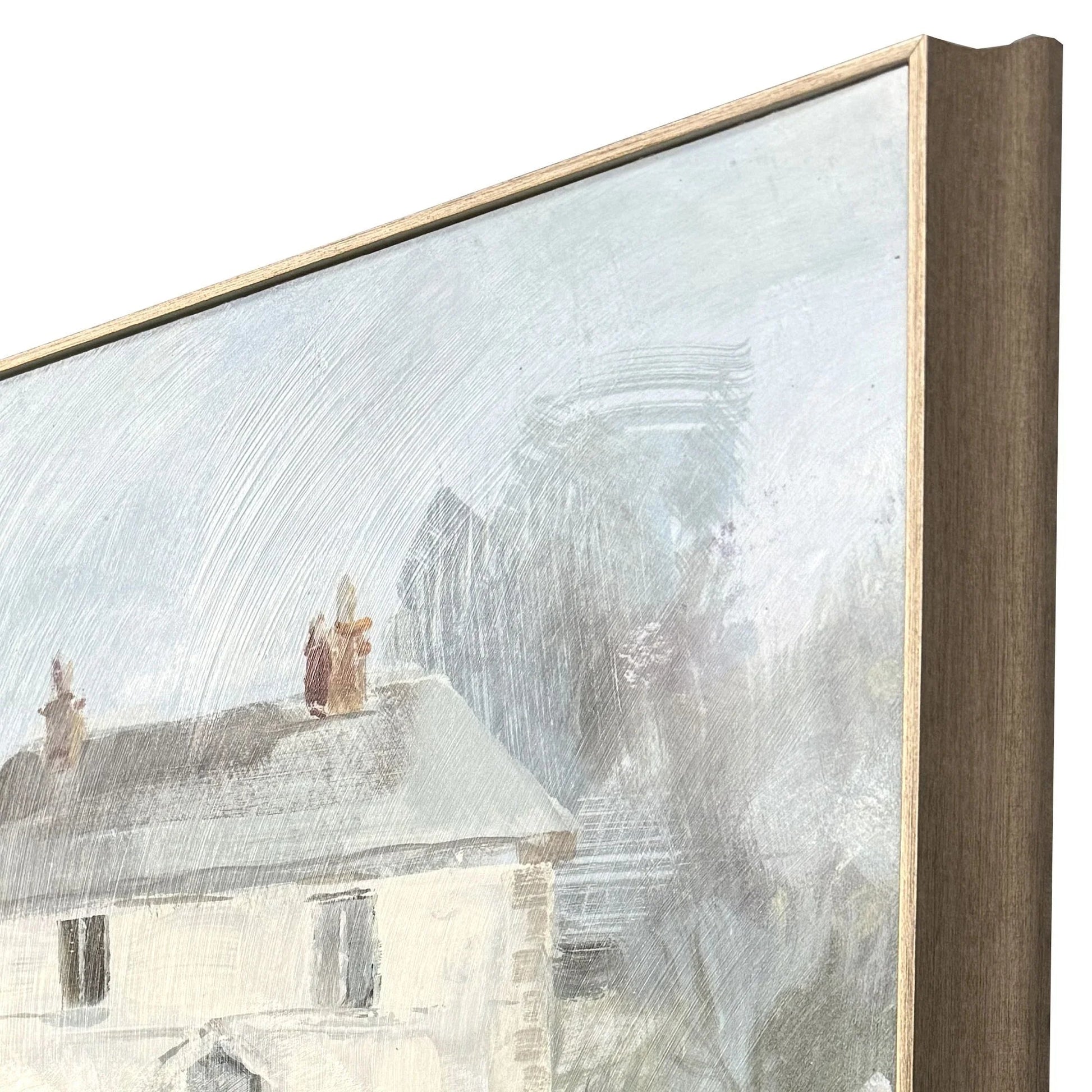 Transform any room into a tranquil retreat with this beautiful wall art piece. Featuring a charming chateau surrounded by vibrant gardens, the artwork captures the essence of peace and serenity. The enhanced gel finish adds texture, bringing the scene to life with its impressionistic style. The lush greenery, colorful flowers, and inviting garden path create a warm and welcoming atmosphere that draws you in. Perfect for adding a touch of traditional elegance to your home decor, this framed print will complement any room with its soothing green hues.