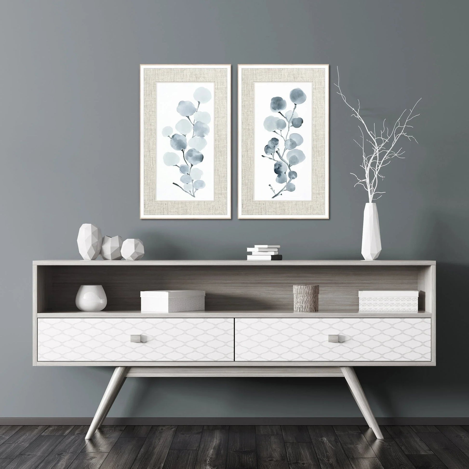 Gray Botanical Wood Frame Gray Canvas Art 2PC