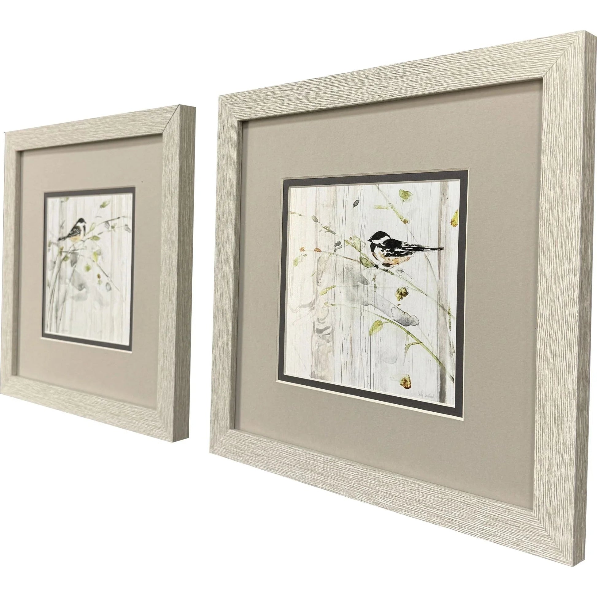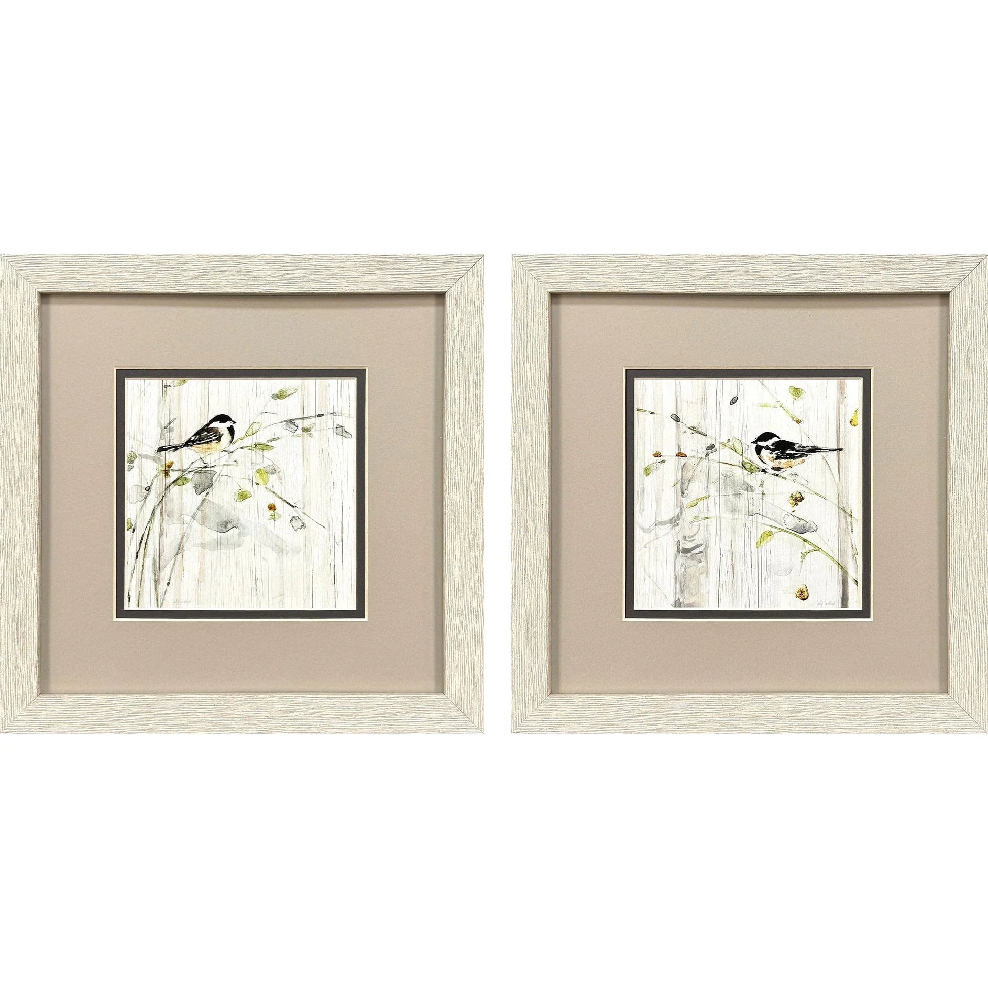 Graceful songbirds settle on delicate branches, capturing the essence of spring's renewal in this stunning set of framed wall art. The Heavenly Spring S/2 Framed Wall Art With Glass Front offers a charming depiction of nature's beauty, perfect for adding a touch of tranquility to any room. Each piece is matted in pewter and elegantly enclosed in a distressed whitewash finish moulding, enhancing its traditional style. The artwork's harmonious blend of muted green, beige, and white colors creates a serene and inviting atmosphere, making it a versatile addition to various interior designs.