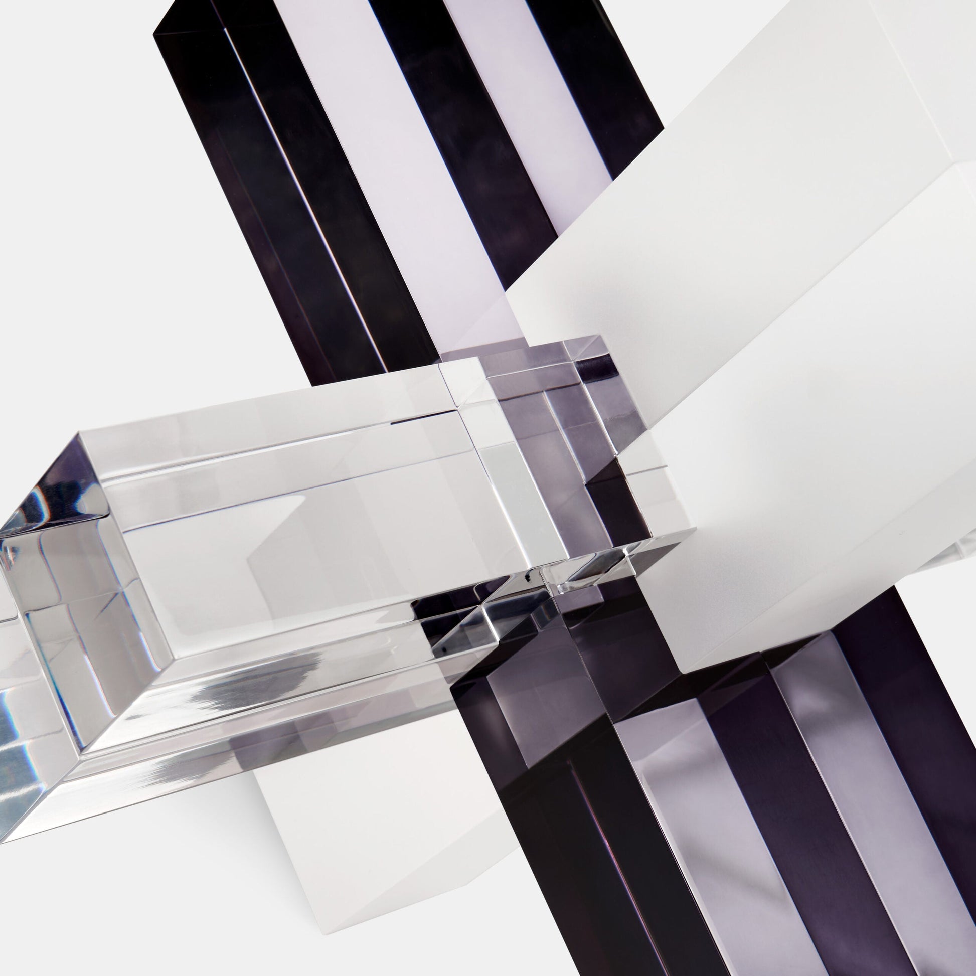 Inspired by traditional Japanese Kumiki puzzles, this sculpture brings a touch of elegance to any room. The Kumiki Jax Sculpture Stunning Acrylic Art Centerpiece is a large-scale art piece made from acrylic, featuring a mix of clear, frosted, and smoke-toned elements. Its intricate interlocking design is both architectural and mysterious, sparking interest and conversation. This stunning piece not only serves as a captivating visual art sculpture but also elevates your space with its sophisticated charm. It's perfect for someone looking to add a unique and artistic touch to their home or office decor.