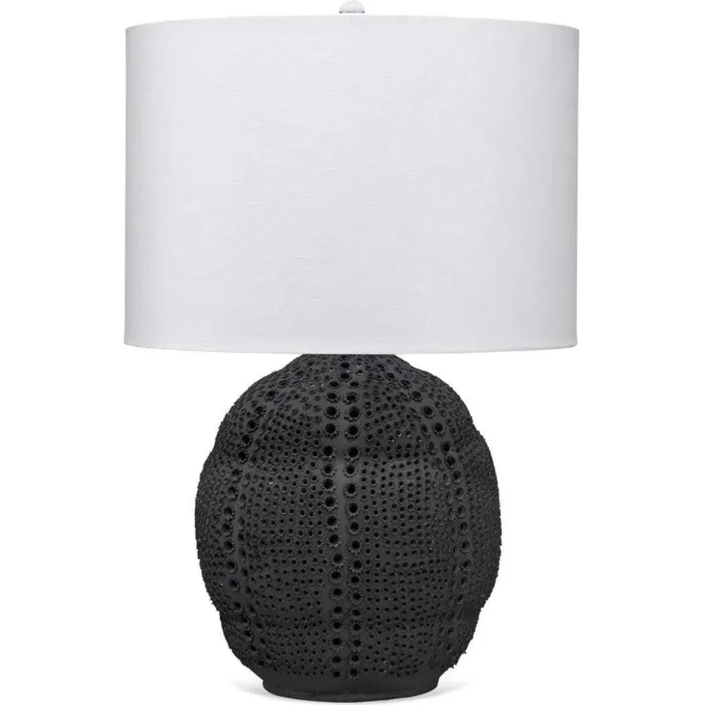 Introducing the Coastal Style Porcelain Lunar Table Lamp, a breathtaking piece inspired by the celestial realm. The base features elaborate perforated patterns, meticulously handcrafted by talented artisans, reminiscent of the moon’s craters, mountains, and seas. Finished in a matte porcelain, this lamp is available in sophisticated Matte Black or Matte White. Topped with a 100% linen white drum shade and silver details, it adds an elegant and opulent touch to any room. The bold perforations on the curved and dimpled base reflect Jaime’s artistic interpretation of the lunar landscape, making each lamp a one-of-a-kind masterpiece.