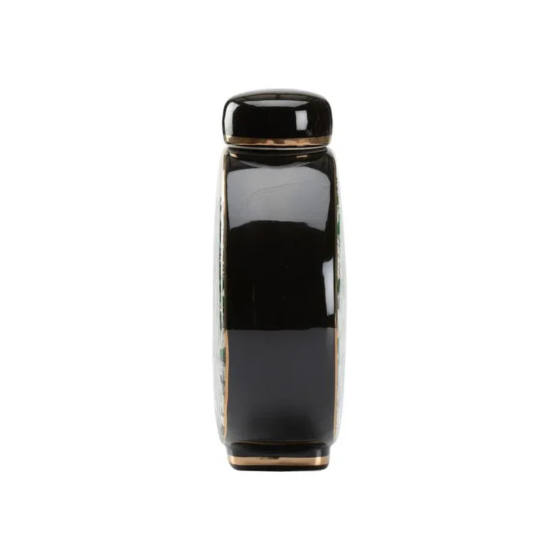 Enhance your home's aesthetic with this beautifully crafted vase, perfect for adding a touch of elegance to any space. Its compact size makes it ideal for tabletops and bookshelves, offering versatility in decoration. The vase showcases a stunning green and white landscape motif, capturing the essence of classical design. Made from high-quality ceramic, it promises durability while maintaining a lightweight build for easy repositioning. The addition of a removable lid not only adds to its functionality but also allows for diverse styling options, making it a practical yet stylish choice for your home. The decorative gold accents on the Matsu Vase add a touch of luxury, enhancing its visual appeal.