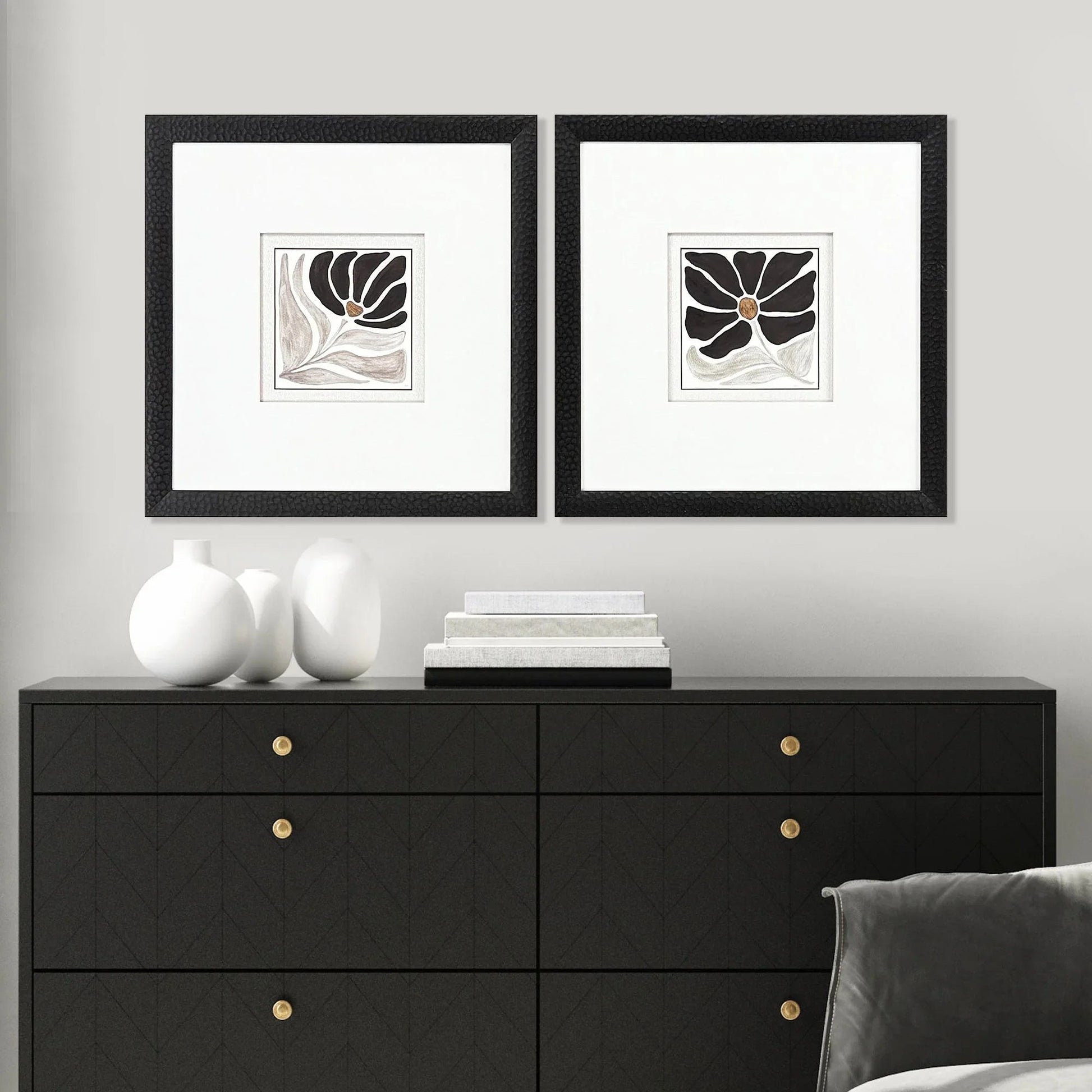 Modern Petals Wood Frame Black Canvas Art 2PC