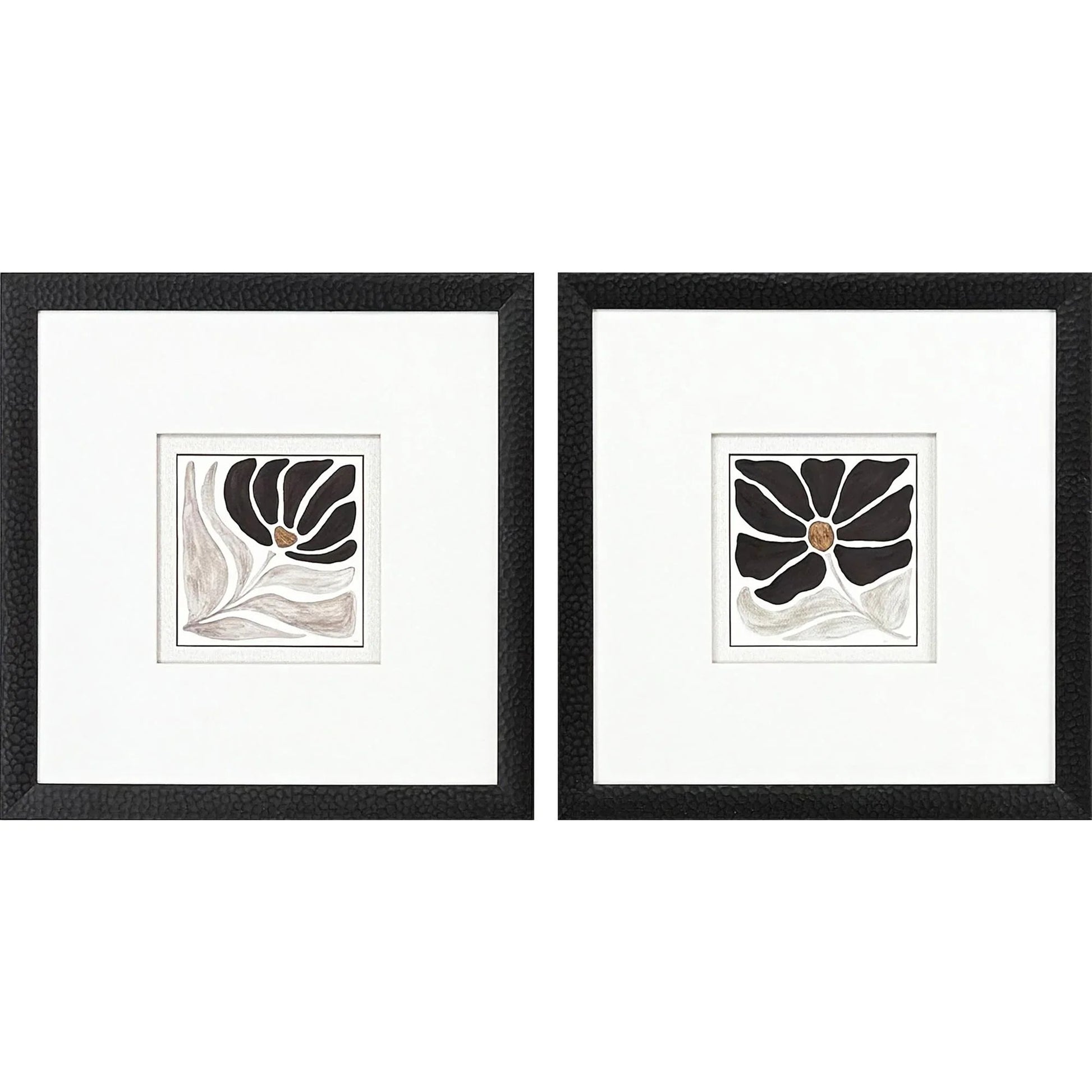 Bring a touch of elegance to any space with the Modern Petals S/2 Giclee Art With Glass Front. This artwork features modern flower blossoms beautifully double-matted on a white background, providing a striking contrast to the black textured frames. The set of two pieces is crafted with care, combining abstract floral designs with subtle beige accents that offer a refined look suitable for any casual style decor.