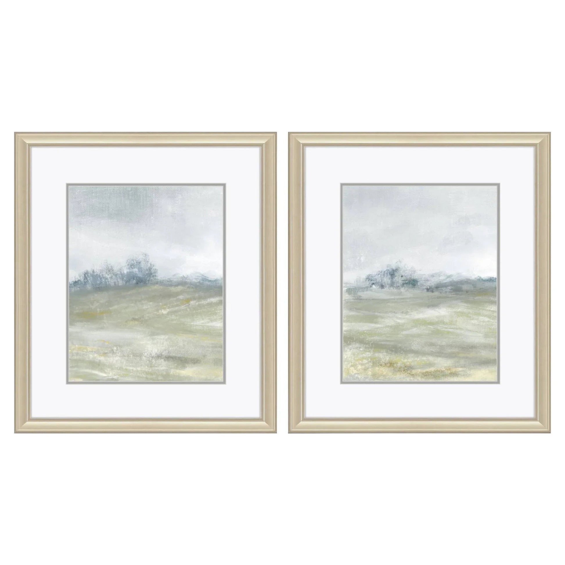 Transform your living space with the Morning Mist S/2 Framed Art Set. This elegant set features two serene landscape images that bring a touch of calm to any room. The art pieces are accentuated with double matting and framed under glass, ensuring a refined look. The antique silver frames add a classic touch that complements the soft neutral colors of the artwork, including beige, gray, white, and hints of blue. This set is perfect for creating a peaceful atmosphere in your home, whether it is displayed in a living room, bedroom, or hallway.