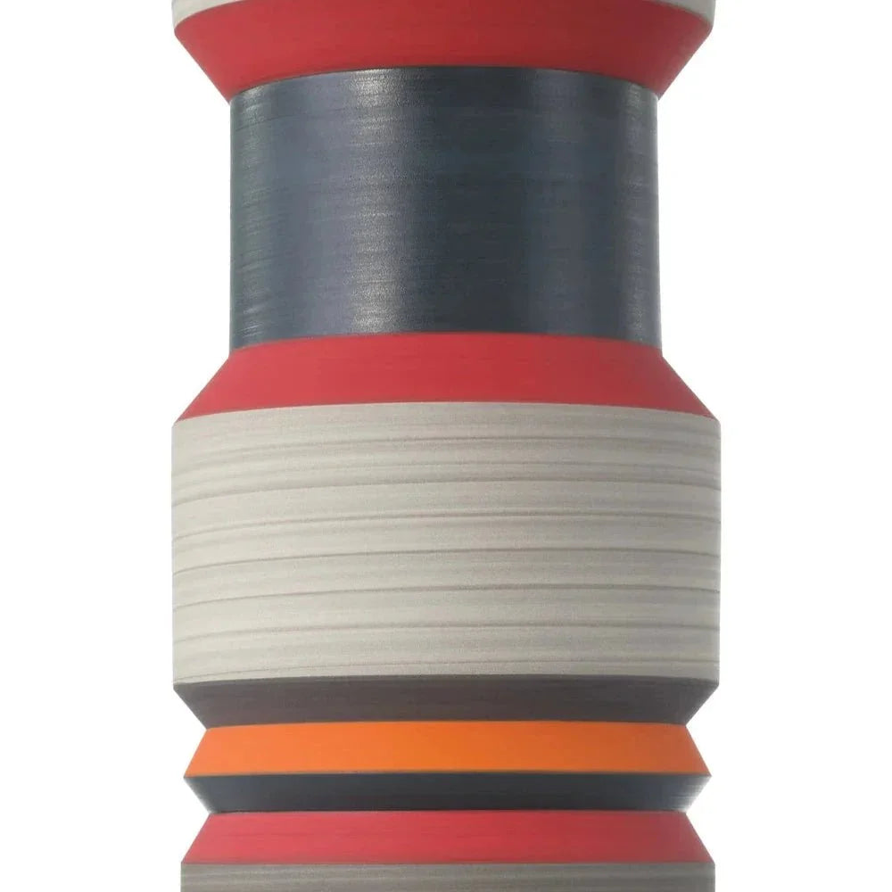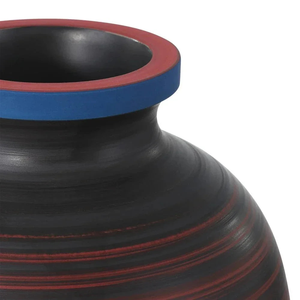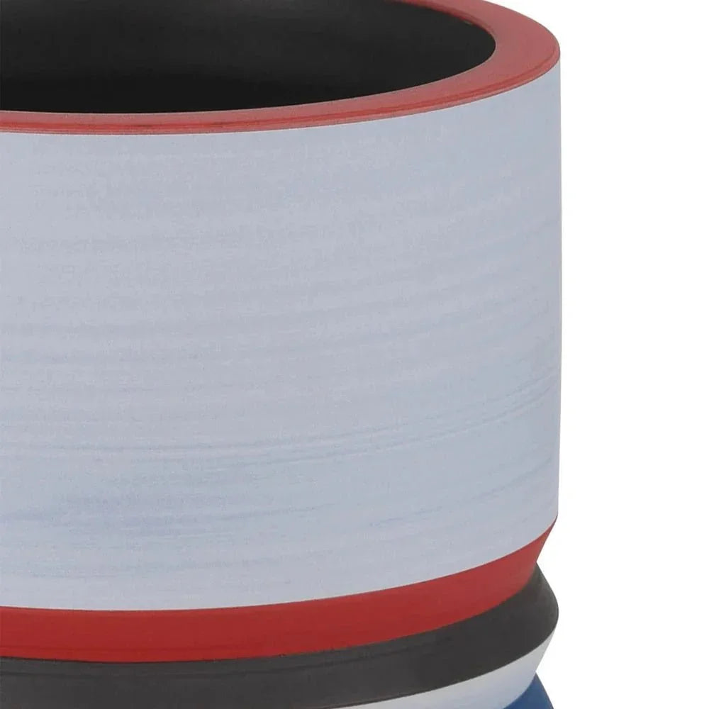 The Happy 80’s Black, Blue, Red & Orange Vase Set is a vibrant tribute to the bold and eclectic spirit of the 1980s, a decade that revolutionized both fashion and interior design with its fearless use of color and shape. Crafted from high-quality porcelain, these striking vases boast an energetic mix of black, blue, red, and orange glazes, each applied in a unique, fluid manner while the vases are spinning on the wheel. This technique ensures that no two pieces are alike, giving each vase a dynamic, textural finish that captures the essence of individuality and artistic flair.