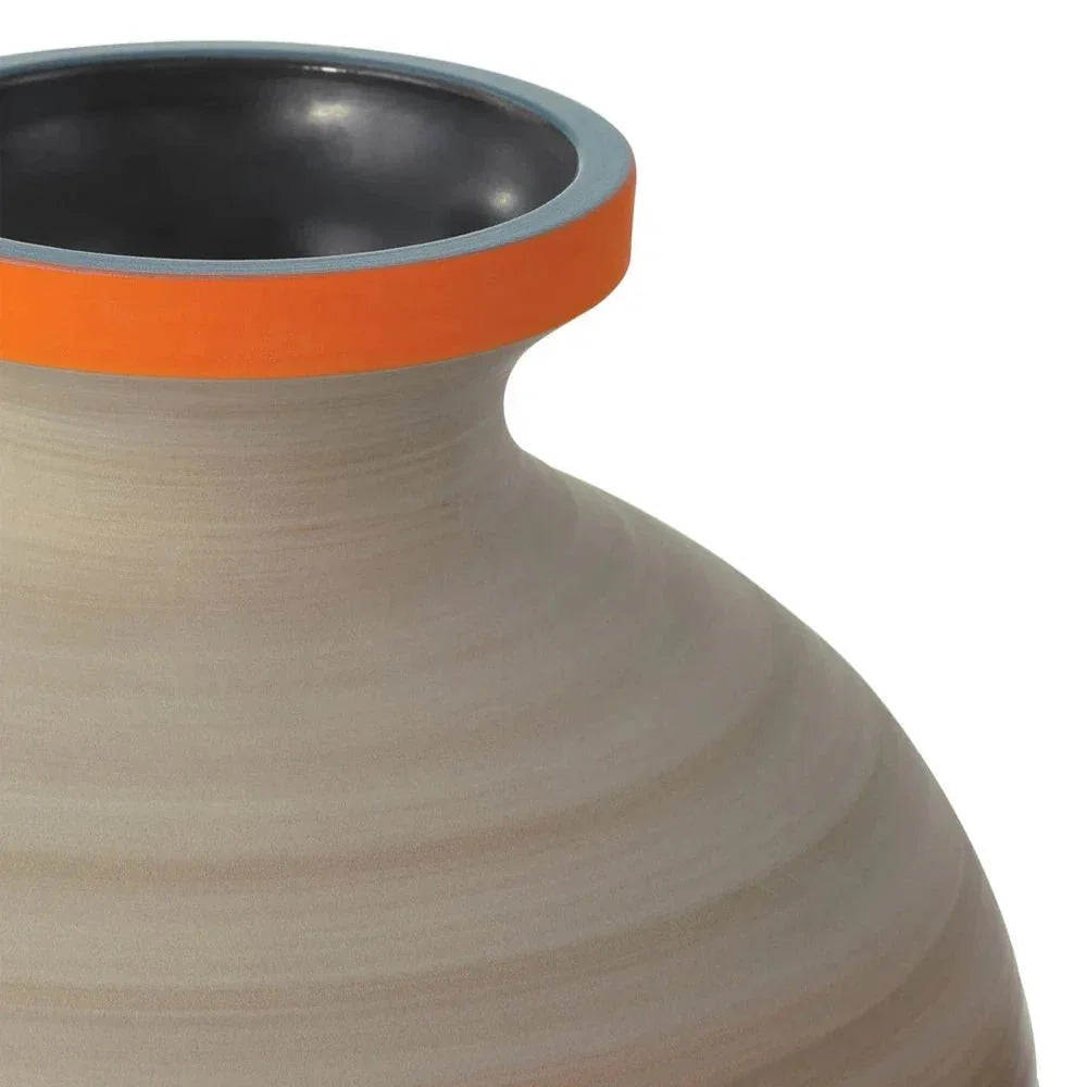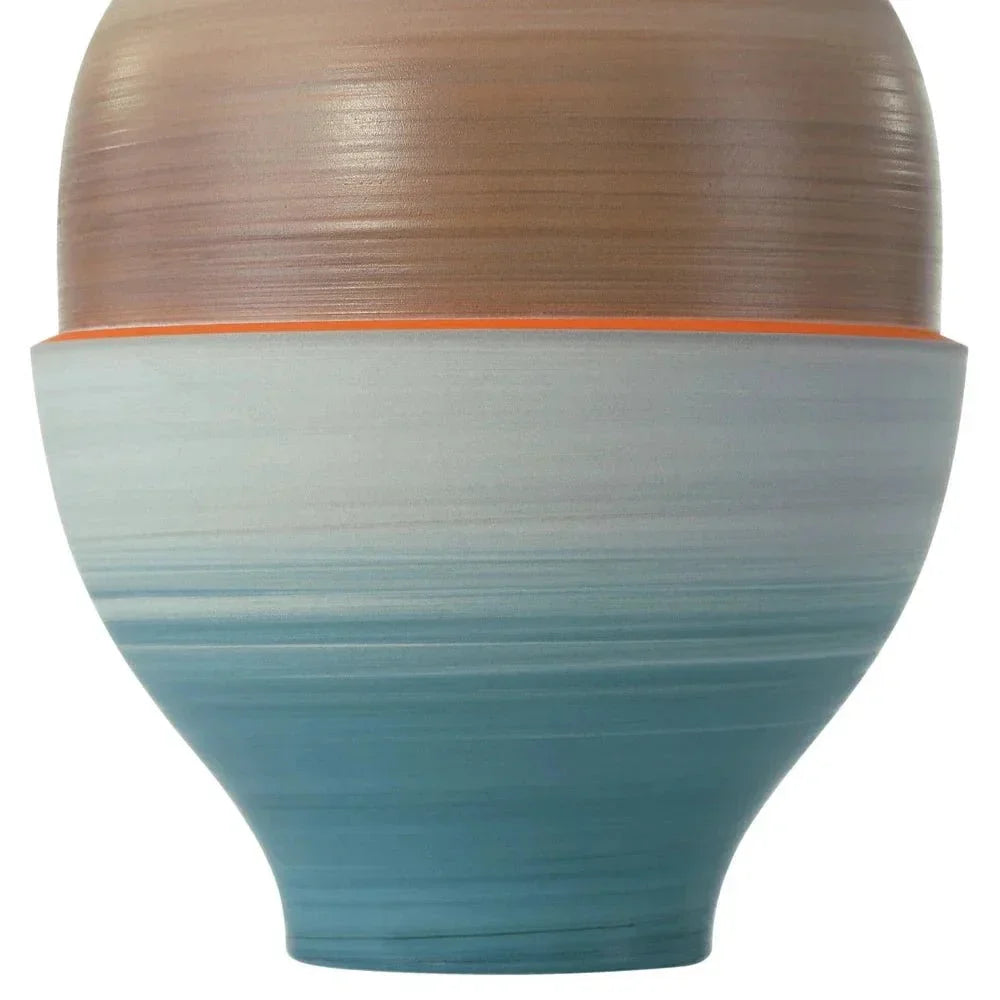 The Happy 80's Vase Set is a delightful nod to a time when bold designs were in vogue. This set of three vases is made from fine porcelain, capturing the vibrant spirit of the 1980s with eye-catching colors. Each vase boasts a unique combination of orange, beige, gray, yellow, and blue, giving them a refreshing, contemporary look. The satin finish adds a touch of elegance, making these vases perfect for any modern interior. The unique application of glazes, done while the vases are spinning, ensures that each piece has its own character, bringing a lively touch to your decor.
