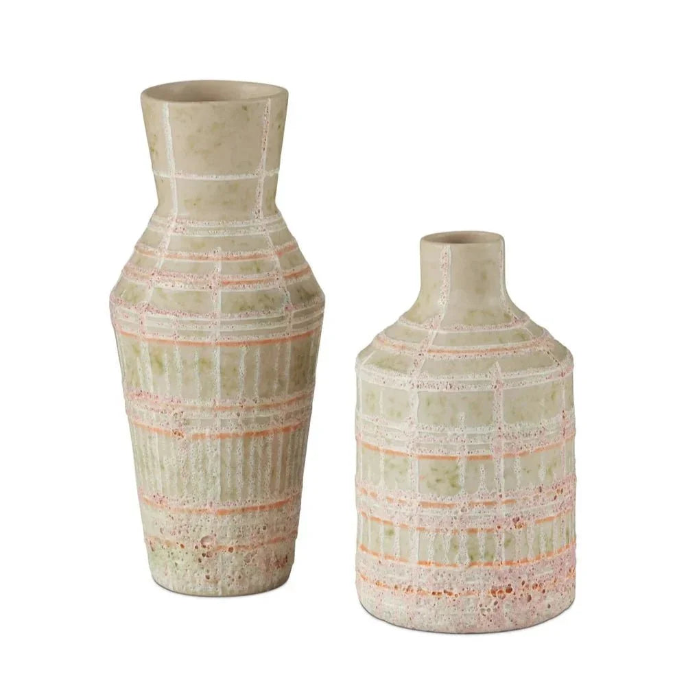 The blend of different colors, where the lines are scraped away, enhances the vases with an antiqued, weathered look, giving them a sense of history and timeless appeal. The matte finish further contributes to the rustic charm, making these vases appear as though they have been treasured over time. Each piece in the Riso Vase Set is unique, with slight variations in the carved pattern and color, ensuring that no two vases are alike.
