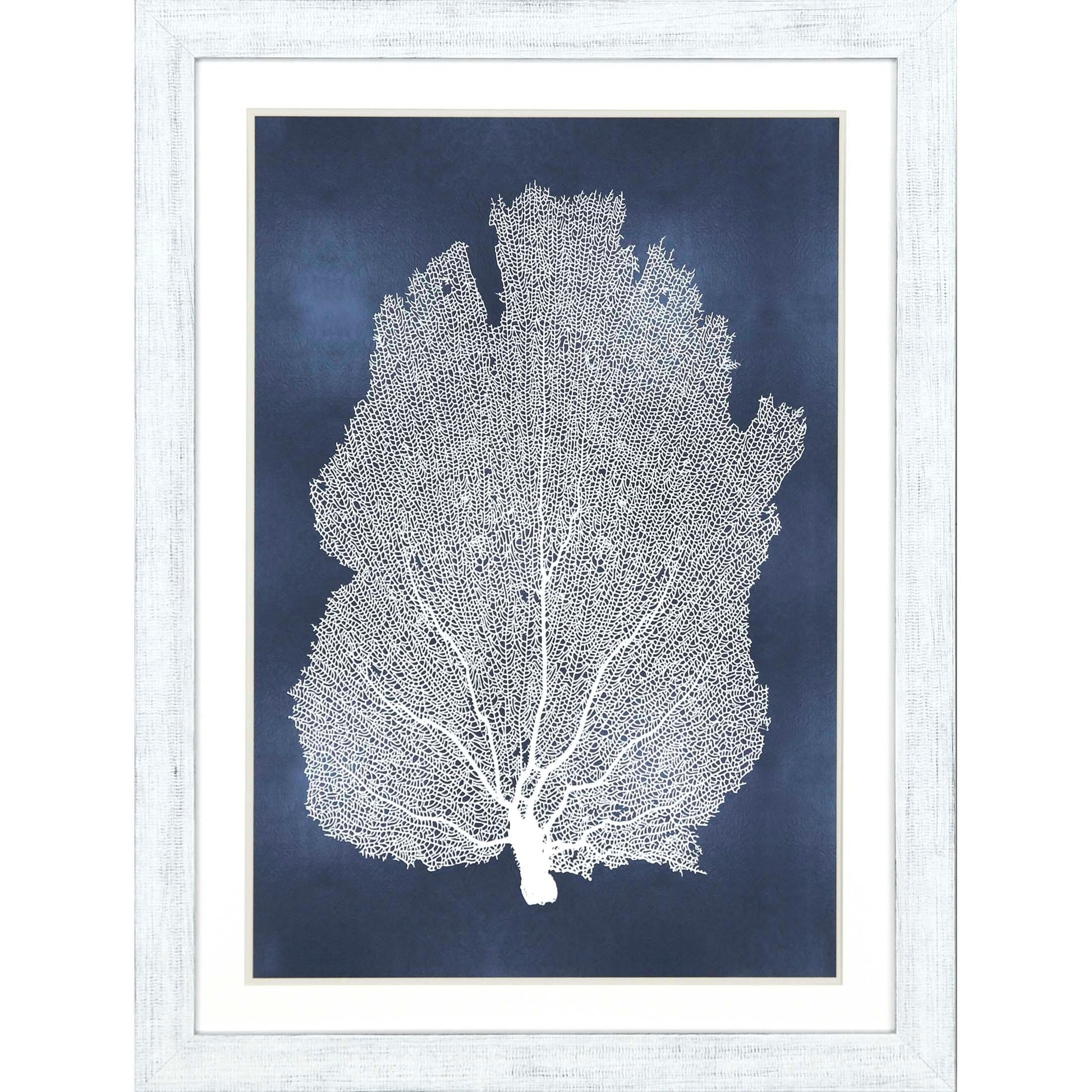 Bring the serene beauty of the coast into your space with the Sea Fan On Blue I and II Coastal Art. This stunning piece features a delicate white sea fan coral illustration set against a deep blue background. The artwork is elegantly matted in white, enhancing its coastal charm and inviting a sense of tranquility into any room. The piece is framed in a whitewash wood frame with subtle charcoal distressing, adding a touch of rustic elegance that complements the coastal theme perfectly.