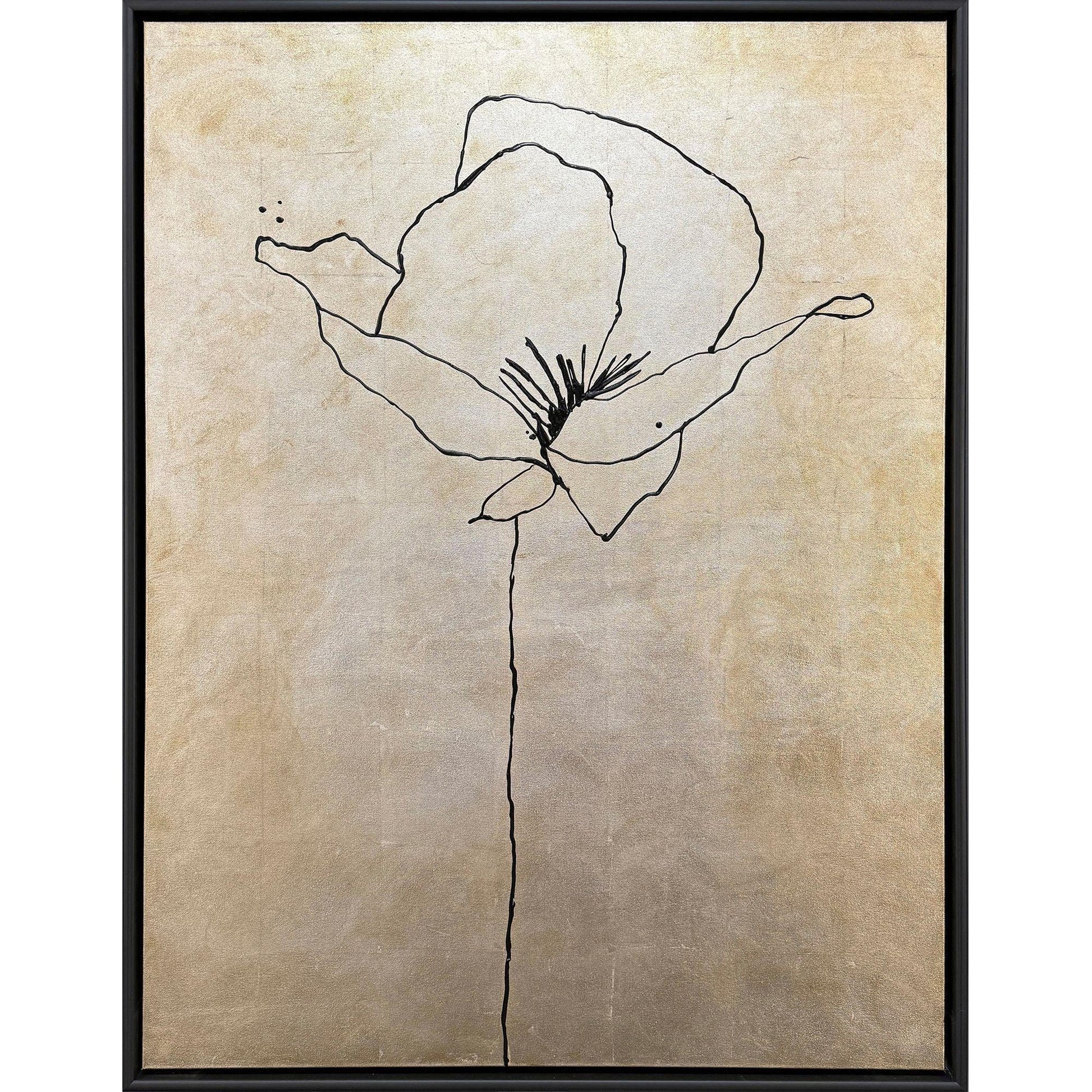 Transform your space with the Silver Poppies I Hand Finished Exclusive Canvas Art. This captivating piece combines hand-painted artistry with mixed media techniques, ensuring each canvas is truly unique. The intricate use of silver leaf adds a touch of elegance, bringing a shimmering depth to the artwork that catches the eye from every angle. Mounted in a satin black wood floater frame, the art stands out while seamlessly blending with any contemporary decor.